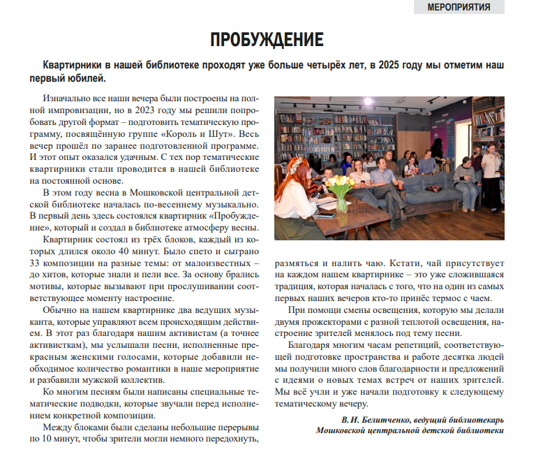 Ачилова Е.В., "Поздравляем тех, кто говорит стихами...". [15.03.2025 состоялась встреча с поэтами из города Новосибирска и Новосибирской области] /Е.В. Ачилова .- Текст: непосредственный // БИНО: БИблиотеки Новосибирской Области 2025.- № 2 (152) .- С.24-25 : фото.