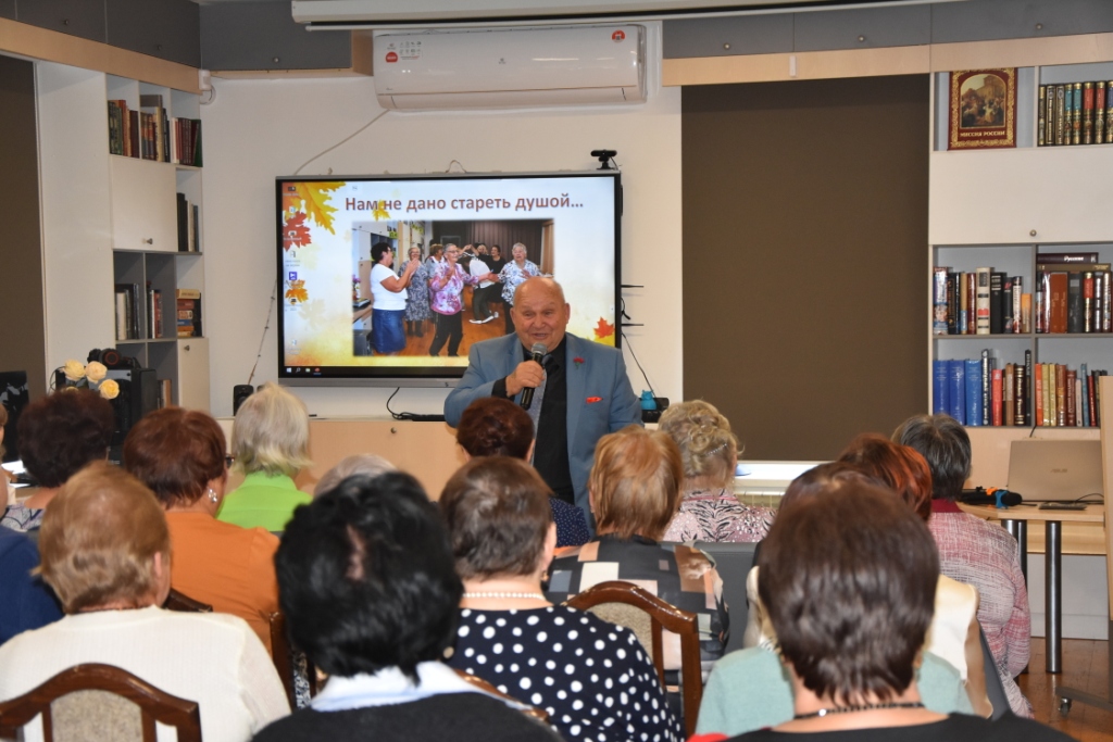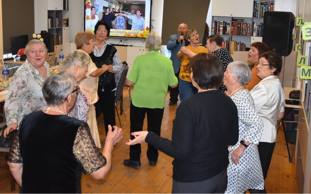 В первых числах октября во всем мире отмечают День пожилого человека. 7 октября Владимир Константинович Колганов и юные артисты ансамбля «Родничок» приготовили концерт для участниц клуба «Гармония». Лирические, патриотические и задорные песни, сменяли друг друга даря зрителям массу положительных эмоций. После концерта женщины продолжили общение за праздничным столом. Стихи, поздравления, танцевальные минутки сменяли друг друга. А презентация с фотографиями с прошедших мероприятий заставила окунуться в воспоминания, в очередной раз доказывая, что возраст определяется не количеством прожитых лет, а состоянием души, что полностью соответствует названию мероприятия «Нам не дано стареть душой…» Несколько часов пролетели незаметно, оставив всем хорошее настроение.