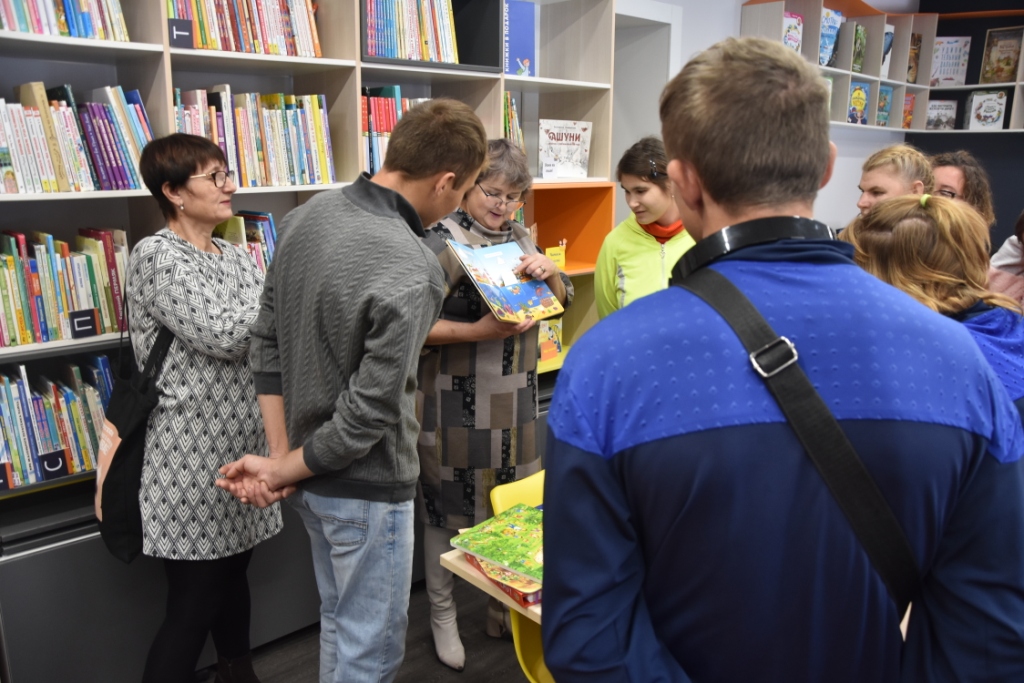 Продолжила экскурсию Луференко С.В., ведущий библиотекарь Мошковской центральной детской библиотеки, показав современные залы, снабженные интерактивными панелями, игровыми зонами, и конечно же книгами с дополненной реальностью: говорящие книги, книги с запахом, книги-панорамы, книги-раскладушки и т.д.