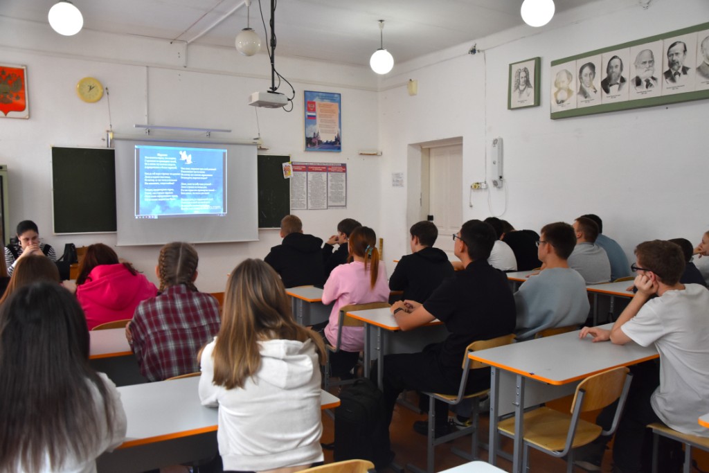 В ходе встречи школьники совершили виртуальное путешествие по памятникам «Белым журавлям», установленным в разных уголках России и за рубежом. Эти устремлённые в небо монументы предстали перед ними как символы вечной памяти, всеобщей скорби и неугасимой надежды.