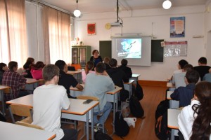 Ведущая, Кондратьева К.В., познакомила старшеклассников с трогательной историей всемирно известного стихотворения Расула Гамзатова «Журавли». Ребята узнали, что его истоки лежат в судьбе японской девочки Садако Сасаки, а бессмертие произведению подарила пронзительная музыка Яна Френкеля.