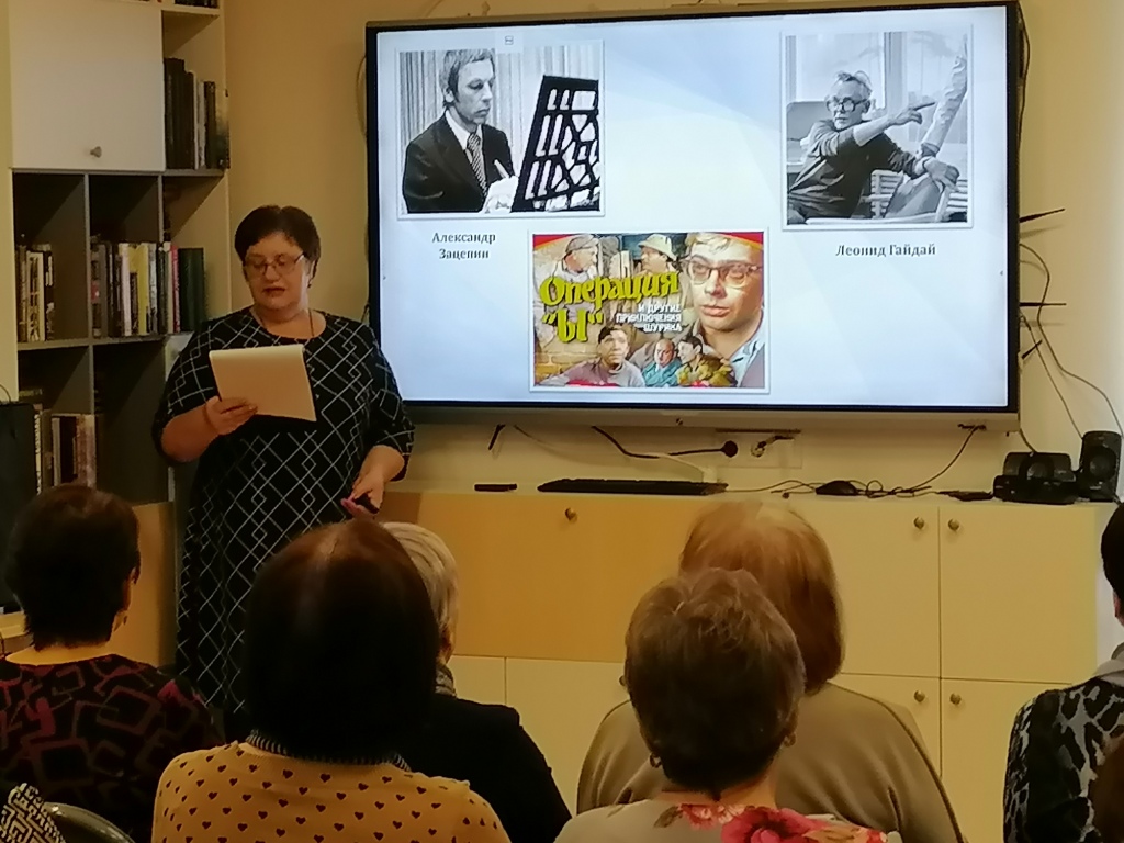 Женщины с неподдельным удовольствием окунулись в богатое творчество маэстро. Руководитель клуба, Яковлева Л.А, показала яркие отрывки из бессмертных комедий Леонида Гайдая, музыка к которым уже давно стала классикой, а также с теплотой в сердце послушали любимые несколькими поколениями слушателей песни.