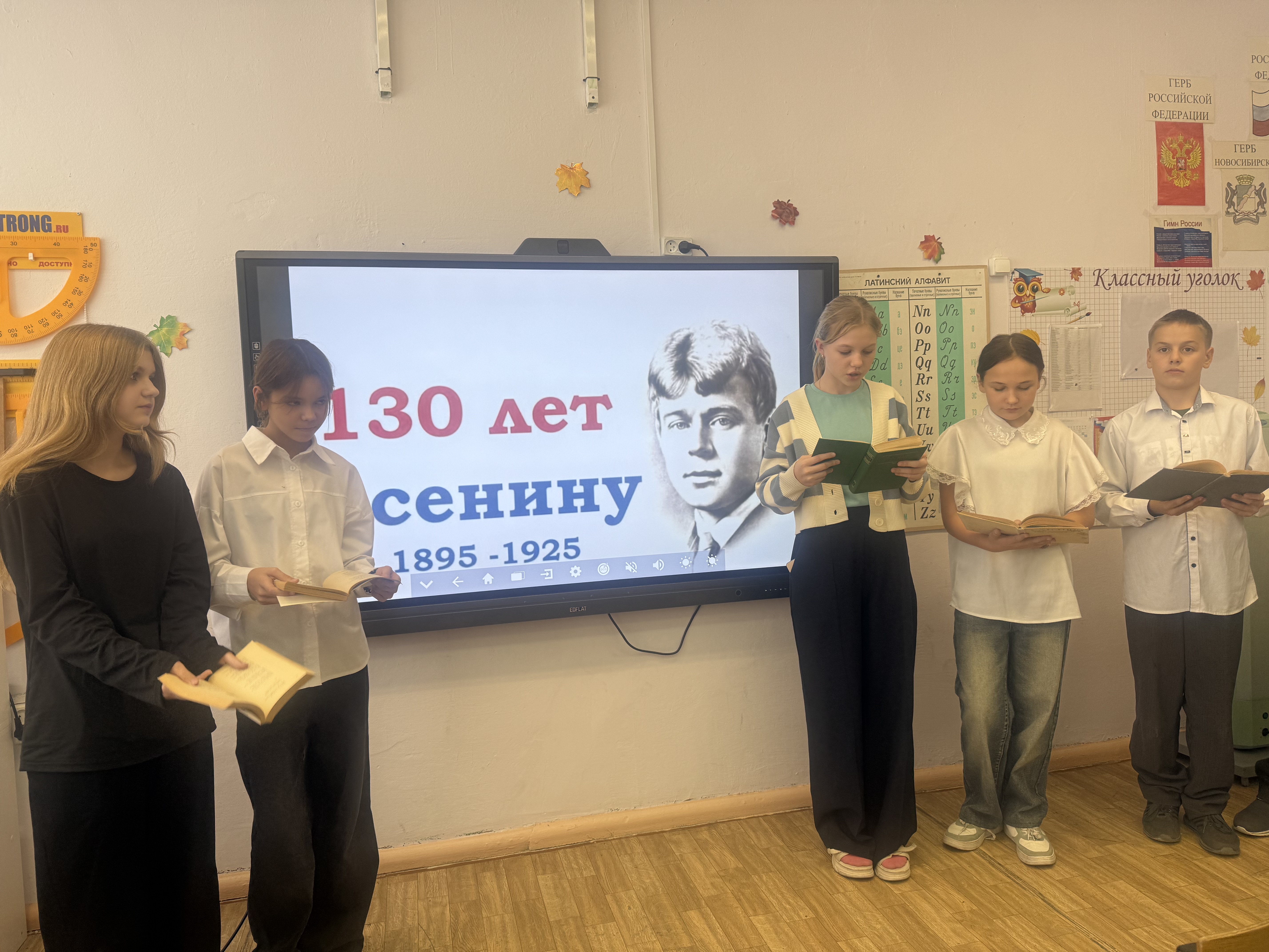 В рамках юбилейной даты ученики шестого класса в формате громких чтений вспомнили и познакомились с новыми стихотворениями поэта. Ученики 3 и 4 классов в нелегкой борьбе встретились на квесте "Поэтической тропой Есенина", где впомнили биографию и творчество поэта. Среди учащихся 6 класса был организован фестиваль стихотворений поэта.