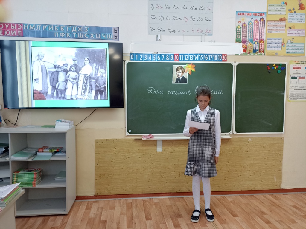 В рамках празднования Года Сергея Есенина во Всероссийский день чтения для школьников прошел поэтический час «Есенин – это вечное». Библиотекарь Смоленской библиотеки познакомила ребят с биографией поэта, рассказала о некоторых эпизодах жизни из детства Сергея. Дружно вспоминали и читали знакомые стихотворения писателя о природе. Рассуждали о разнообразии творчества Есенина и подвели итог, что его стихи будут читать и люди будущего.