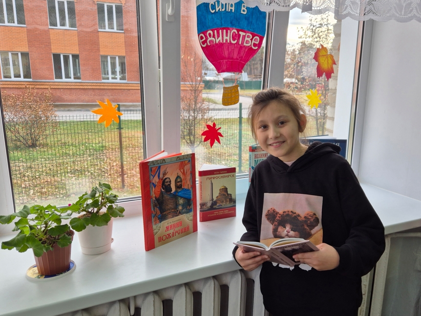 К этой знаменательной дате в библиотеке организована тематическая книжно-иллюстративная выставка «Сила характера». В рамках выставки библиотекарь проводит беседы с посетителями, в ходе которых обращаются к истории Смутного времени, рассказывают посетителям о подвиге народных героев Кузьмы Минина и Дмитрия Пожарского и вместе с читателями рассуждают о сути силы народа - силы победы, единства и характера.