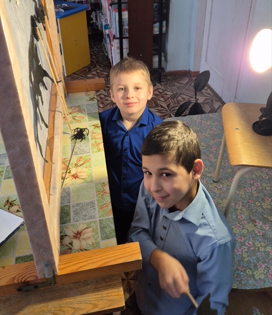 - совместную постановку в теневом театре по сказке Георгия Скребицкого «Зима» о жизни лесных обитателей в зимнюю пору.