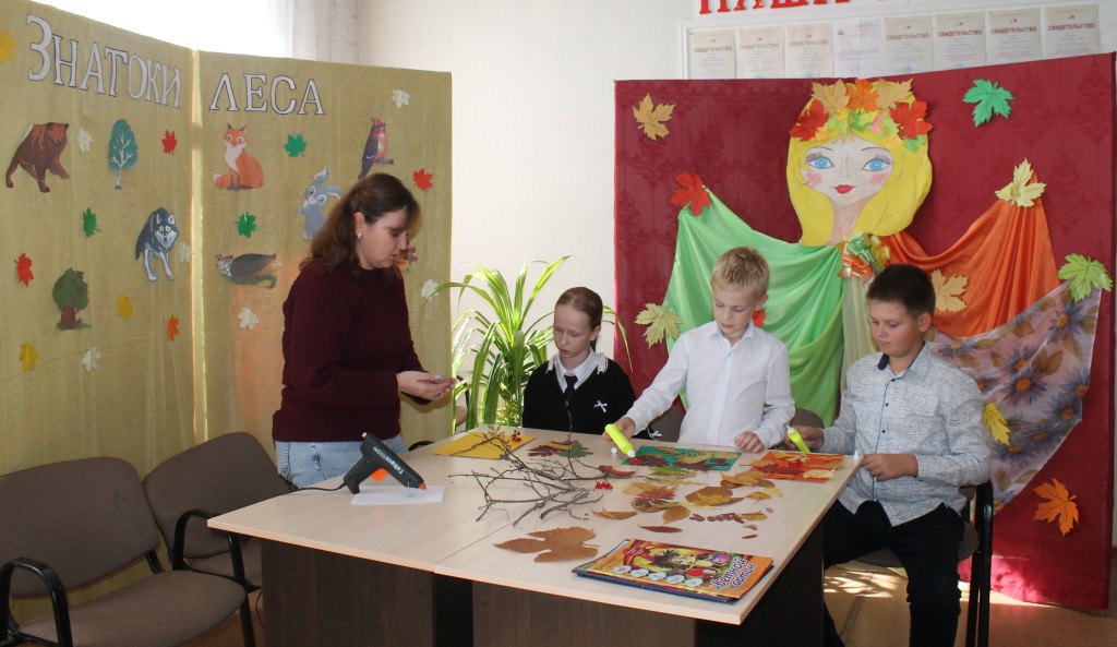 Затем специалисты СК провели для ребят конкурсную программу и творческую лабораторию в технике аппликации из природного материала «Осенние фантазии». Работы всех участников были индивидуальными и красочными.
