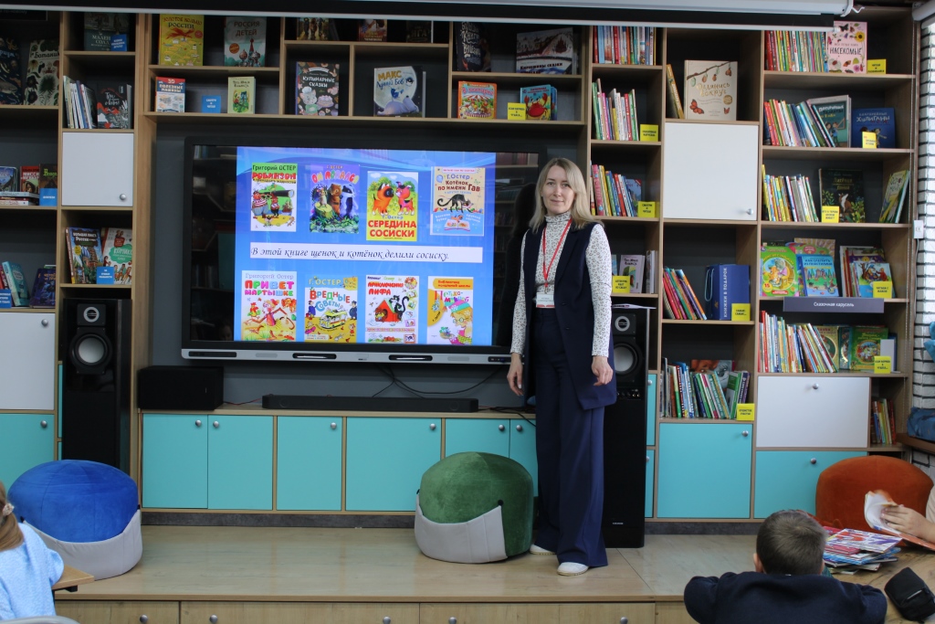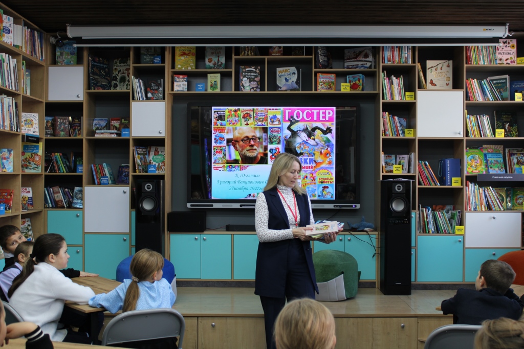 Библиотекарь с удовольствием рассказала юным слушателям о жизни и творчестве этого замечательного писателя, сценариста, драматурга и заслуженного деятеля искусств России. Дети с радостью делились своими любимыми произведениями Григория Остера, перечисляя знакомые и дорогие сердцу рассказы, сказки и мультфильмы. Среди них прозвучали такие названия, как «Четвёрка друзей», «Котёнок по имени Гав», «Баба Яга против», «Попался, который кусался», «Обезьянки» и «Ушастик и его друзья». Кульминацией встречи стало чтение книги «38 попугаев». Эти замечательные сказки о слонёнке, мартышке, удаве и попугае не только развлекли ребят, но и дали пищу для размышлений о том, как строить добрые и крепкие отношения со сверстниками и взрослыми.