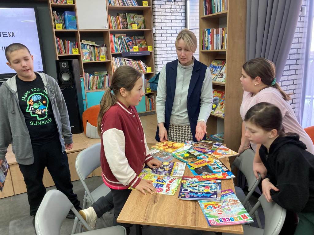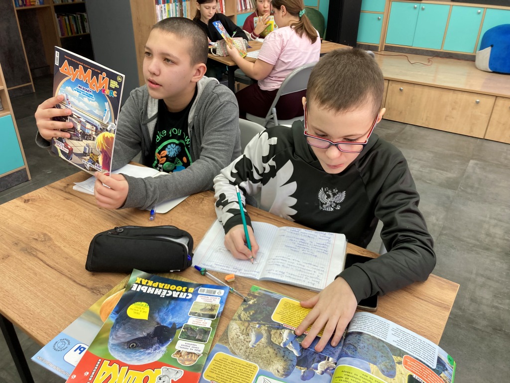 Ребята из 4 класса знают, что библиотека – это не только место, где можно найти интересную книгу для чтения, но и отличное пространство для учебы. На днях они пришли в библиотеку, чтобы поработать над важным заданием: сделать описания детских журналов. Под чутким руководством Натальи Александровны, ребята отправились в увлекательное путешествие по миру периодики. Библиотекарь провела для них настоящий обзор самых разных детских журналов, показав, какие интересные статьи, истории и полезные материалы там можно найти. Наталья Александровна подробно объяснила, как правильно работать с журналом: где искать нужную информацию для доклада, как выписывать интересные факты и как оформить свое описание так, чтобы оно было понятным и увлекательным. Теперь каждый четвероклассник знает, как превратить обычный журнал в настоящий исследовательский проект!