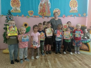 На прощание, библиотекарь подарила ребятам раскраски со сказочными персонажами.