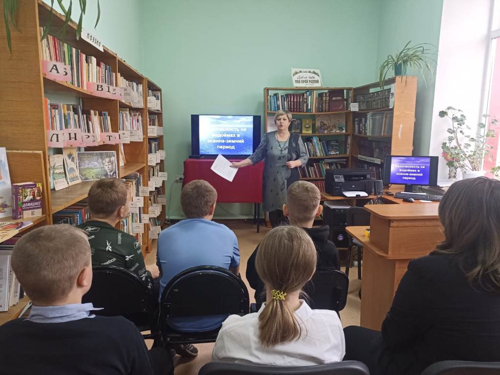 22 октября библиотекарь Балтинкой библиотеки для учащихся 6 класса провела беседу на тему «Безопасность на водоёмах в осенне-зимний период».