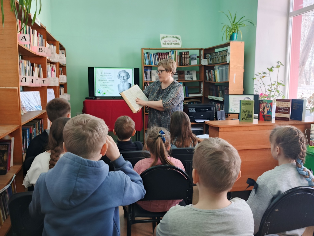 Библиотекарь рассказала детям о величии и богатстве русского языка, о основоположниках славянского алфавита Кирилле и Мефодии, о собирателе русского языка и фольклора В.И. Дале и его «Толковом словаре», проследили судьбу некоторых букв из русского алфавита, познакомились с памятниками: букве Ё и русскому слову, поговорили о культуре устной речи и этикете в Интернете. Продолжением мероприятия стало участие ребят в конкурсах на знание русского языка: «Дополни пословицу», «Крылатые выражения» - раскрыть их смысл, «Грамотеи» - вставить пропущенные буквы, «Слова играют в прятки» - найти слова-названия в предложениях, отгадывали загадки. Выполняя задания, ребята проявили смекалку и находчивость.