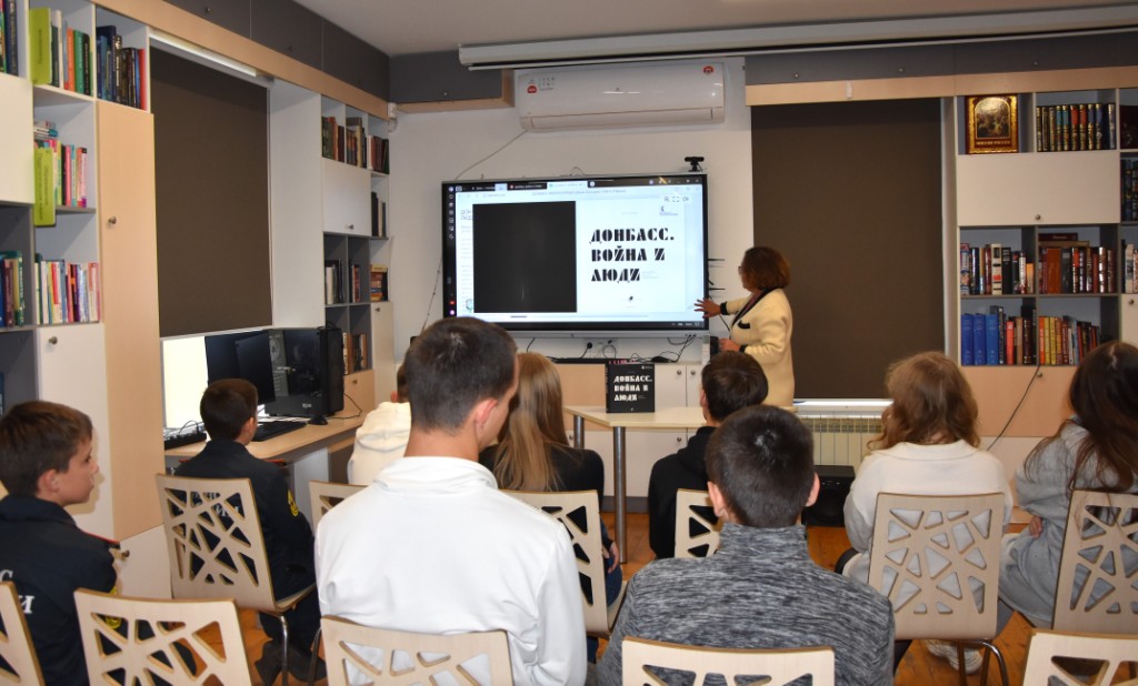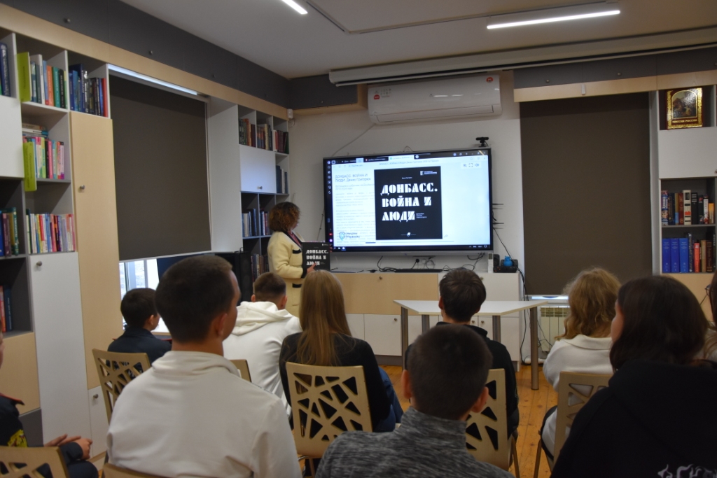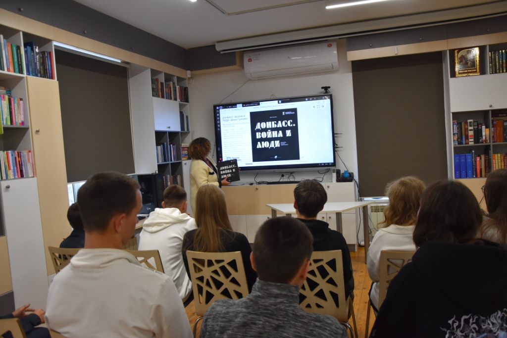 Ксения Владимировна провела презентацию по цифровым страницам книги. Фотографии, сделанные в столице ДНР и за её пределами, стали мощным иллюстративным материалом. Электронная экскурсия произвела на молодых людей глубокое впечатление, наглядно показав важность сохранения памяти о произошедшем.