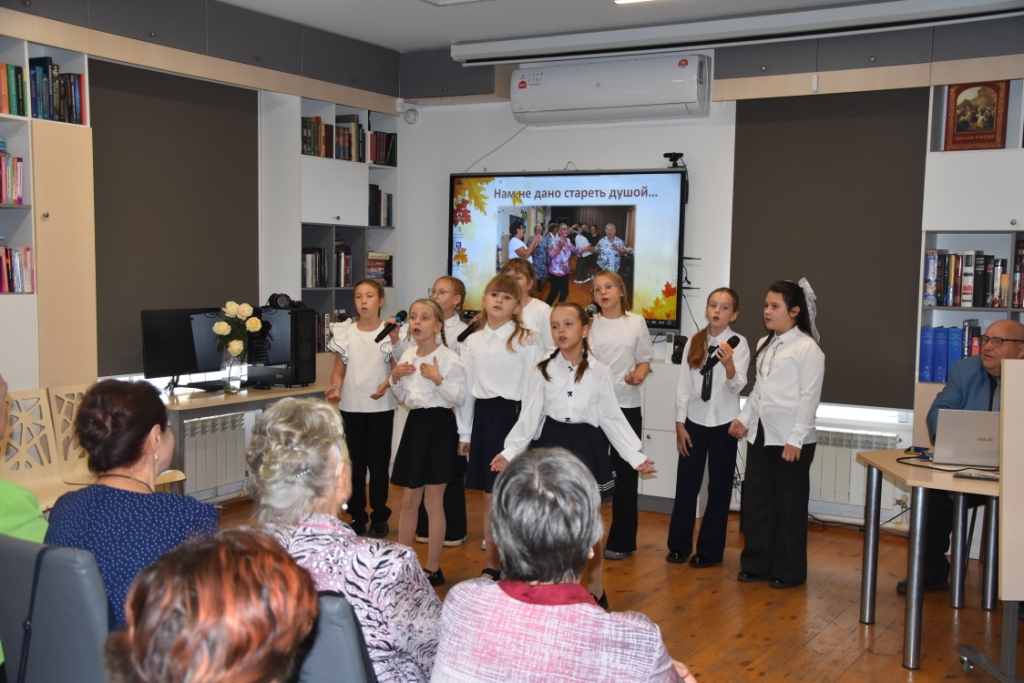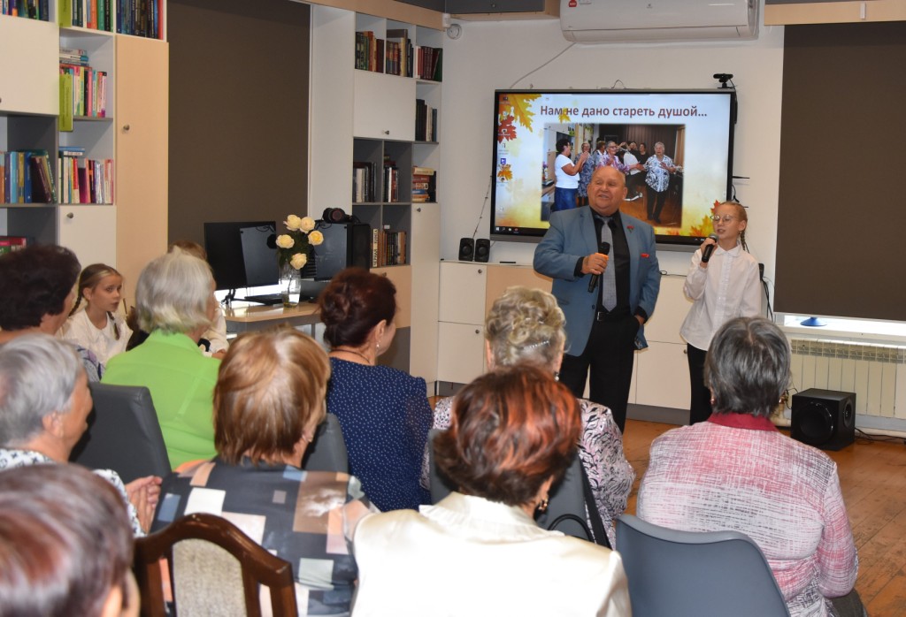 В первых числах октября во всем мире отмечают День пожилого человека. 7 октября Владимир Константинович Колганов и юные артисты ансамбля «Родничок» приготовили концерт для участниц клуба «Гармония». Лирические, патриотические и задорные песни, сменяли друг друга даря зрителям массу положительных эмоций. После концерта женщины продолжили общение за праздничным столом. Стихи, поздравления, танцевальные минутки сменяли друг друга. А презентация с фотографиями с прошедших мероприятий заставила окунуться в воспоминания, в очередной раз доказывая, что возраст определяется не количеством прожитых лет, а состоянием души, что полностью соответствует названию мероприятия «Нам не дано стареть душой…» Несколько часов пролетели незаметно, оставив всем хорошее настроение.