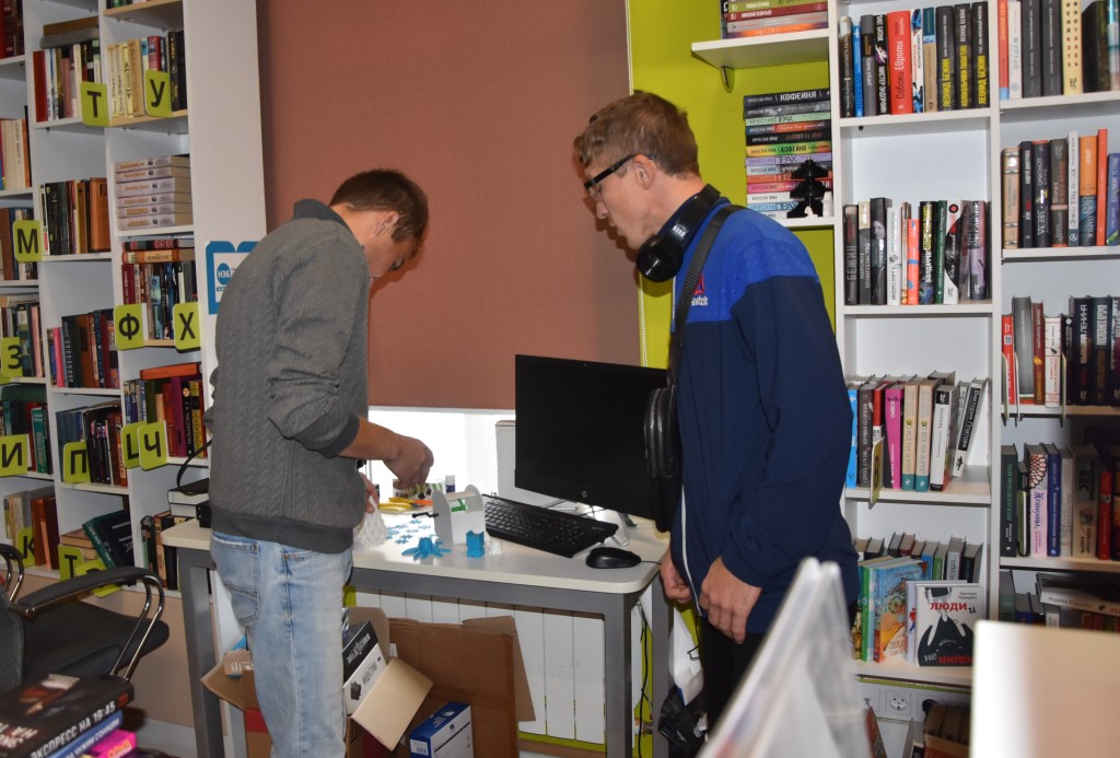 Библиограф отдела обслуживания Кондратьева К.В. провела экскурсию по отделам библиотеки, рассказала о книгах, представленных на полках, обратив внимание на то, что за последние годы у нас появилось очень много новинок. Особое внимание было уделено современной технике, которая пользуется большой популярностью среди читателей, а работу 3D принтера многие увидели впервые.