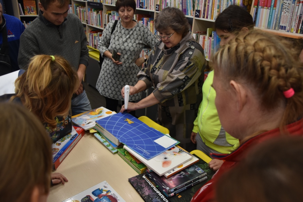 Продолжила экскурсию Луференко С.В., ведущий библиотекарь Мошковской центральной детской библиотеки, показав современные залы, снабженные интерактивными панелями, игровыми зонами, и конечно же книгами с дополненной реальностью: говорящие книги, книги с запахом, книги-панорамы, книги-раскладушки и т.д.