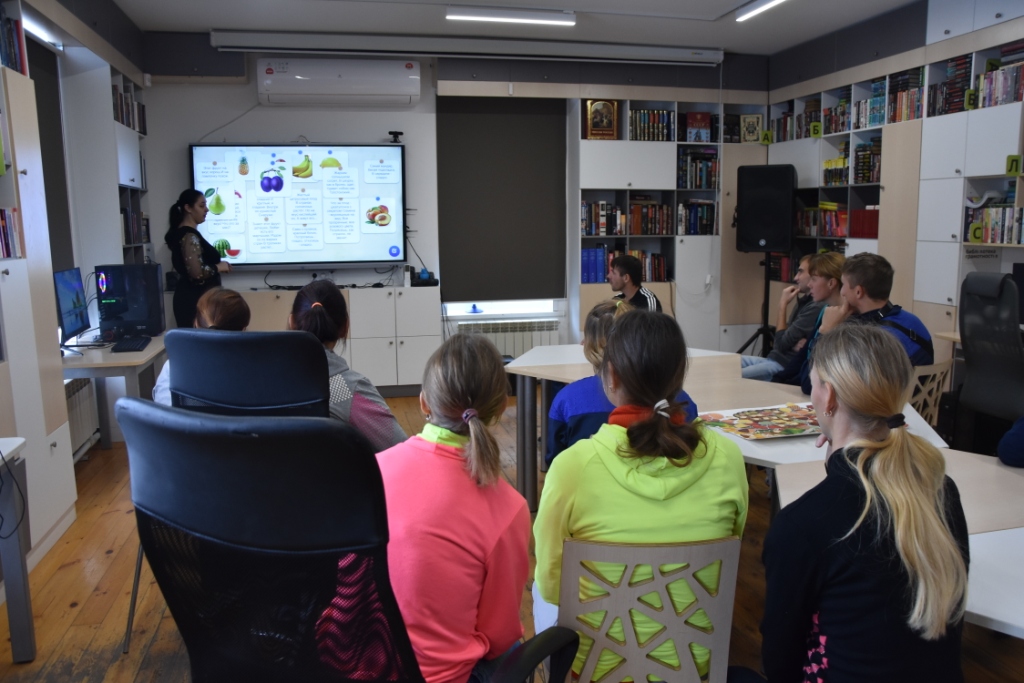 Ведущий библиотекарь отдела обслуживания Свистельникова Т.Е. провела несколько интерактивных игр: загадки о фруктах, сказочный транспорт, продолжи пословицу.