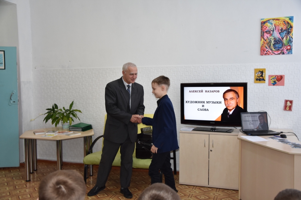 Выражаем огромную благодарность Алексею Николаевичу Назарову за душевный разговор и подаренные эмоции, а также нашим коллегам из Ташаринской библиотеки и четвероклассникам Ташаринской школы за тёплый приём.