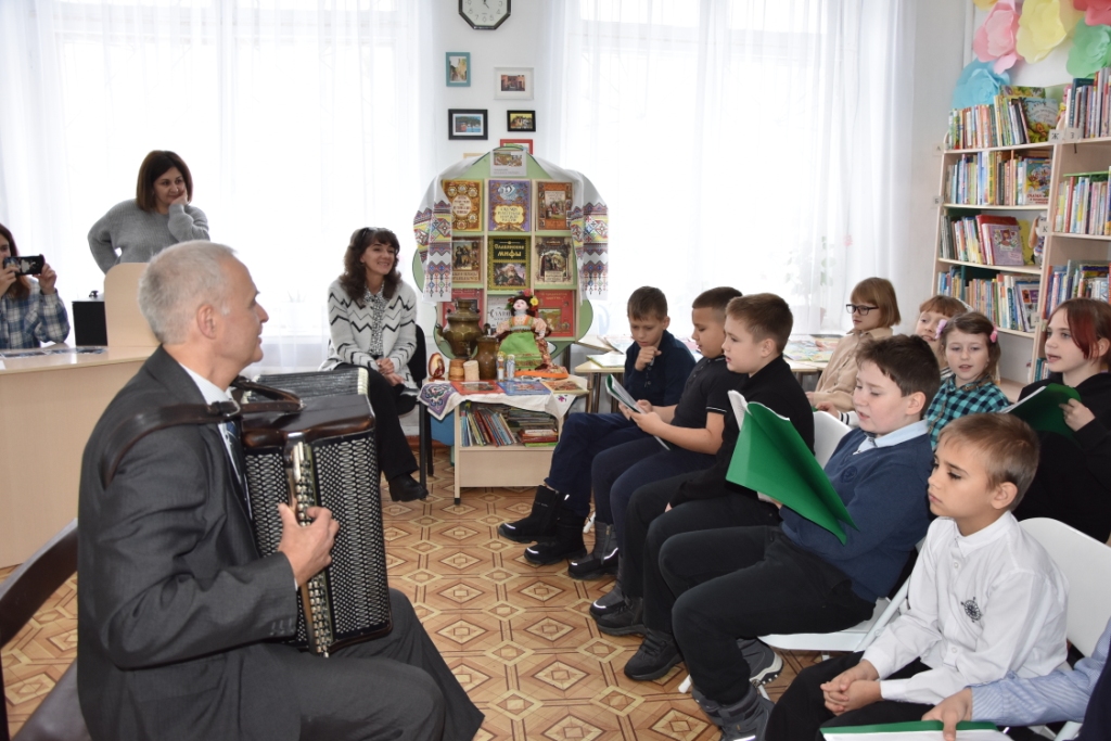 По-настоящему у детей загорелись глаза, когда Алексей Николаевич взял в руки баян. Как выяснилось, ребятам знакомы многие песни, особенно порадовало, что они сами предложили спеть «День Победы», «Смуглянку» и «Катюшу!