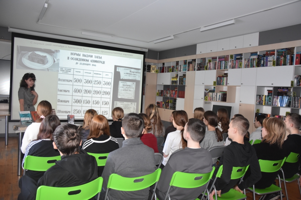 27 января в библиотеке состоялся урок мужества для восьмиклассников Мошковской средней школы №1, посвящённый 82-й годовщине полного освобождения Ленинграда от фашистской блокады.