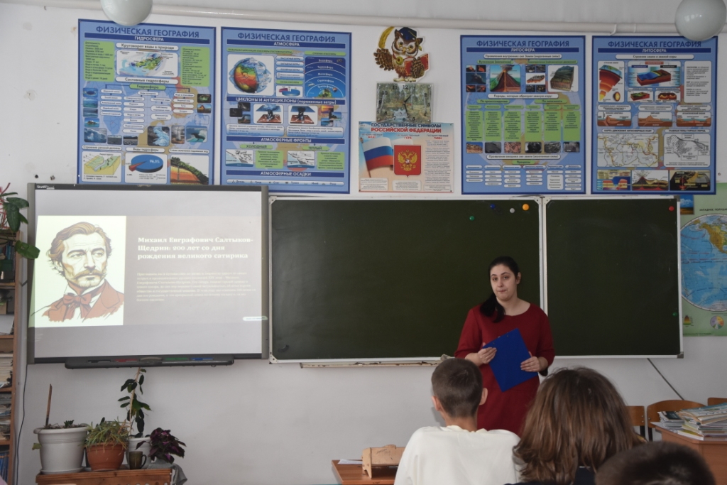 29 января в рамках празднования 200-летия со дня рождения Михаила Евграфовича Салтыкова-Щедрина, библиотекари отдела обслуживания провели литературный час для девятиклассников Мошковской средней школы №1.