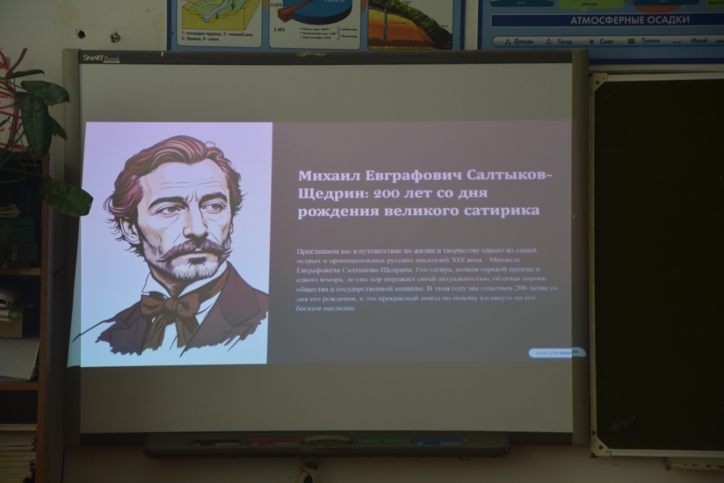 Основное внимание ведущая уделила анализу мировоззрения Салтыкова-Щедрина как «самого пессимистичного русского писателя», не верившего в возможность исцеления социальных язв, подчеркнула его уникальную способность диагностировать «неизменность» общественных пороков, что делает его произведения актуальными и в наши дни.