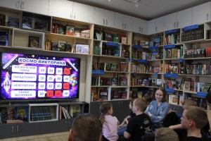 Сегодня, накануне Дня космонавтики, в нашей библиотеке прошло тематическое развлечение «Космическое путешествие». Ребята с удовольствием окунулись в мир звезд и планет. В ходе программы ребята: вспомнили, что первыми в космосе побывали собаки Белка и Стрелка, а затем — Юрий Гагарин, при помощи викторины изучали планеты Солнечной системы в игровой форме. Теперь у некоторых ребят появилась мечта — полететь в космос.