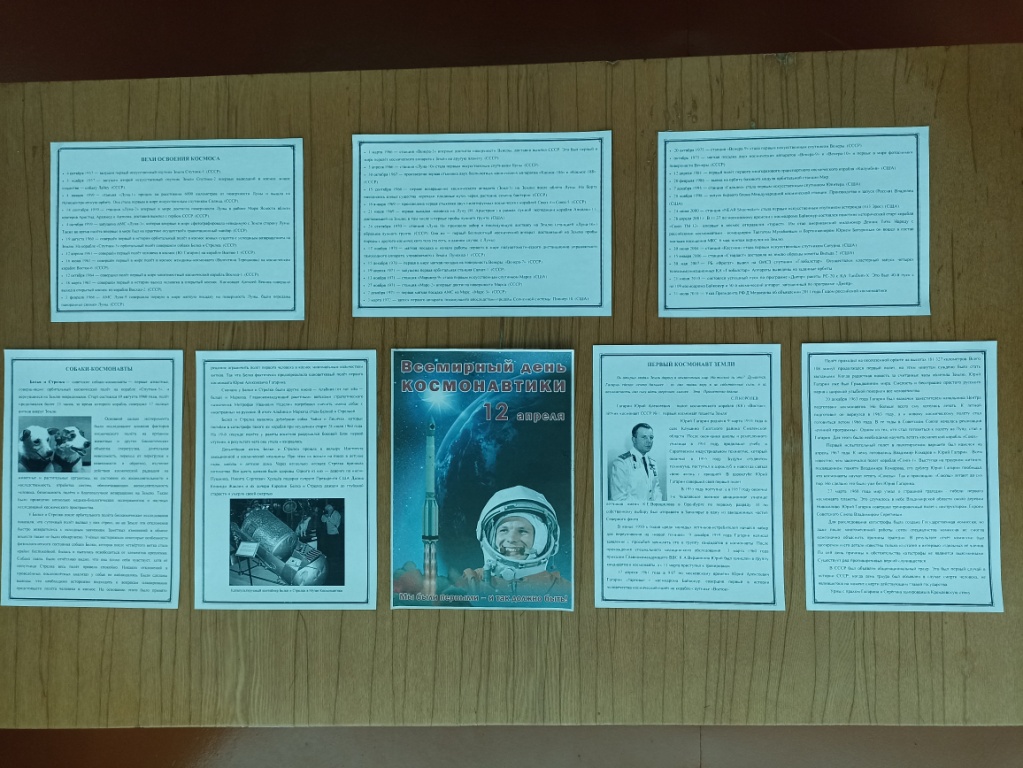 В рамках празднования 65-летия полета в космос Юрия Алексеевича Гагарина (1961), в Смоленской библиотеке для школьников проведена беседа у книжной выставки «Знакомьтесь: Гагарин». Библиотекарь выяснила у детей, что они знают о Ю.А.Гагарине, дополнила их рассказ фактами из жизни летчика-космонавта, зачитали отрывки из книги Ю.Нагибина «Рассказы о Гагарине». Ребята активно участвовали в беседе, некоторые книги взяли для прочтения на дом. Кроме этого, в библиотеке оформлен информационный стенд о Дне космонавтики, и в холле Дома культуры организована выставка детских творческих работ.