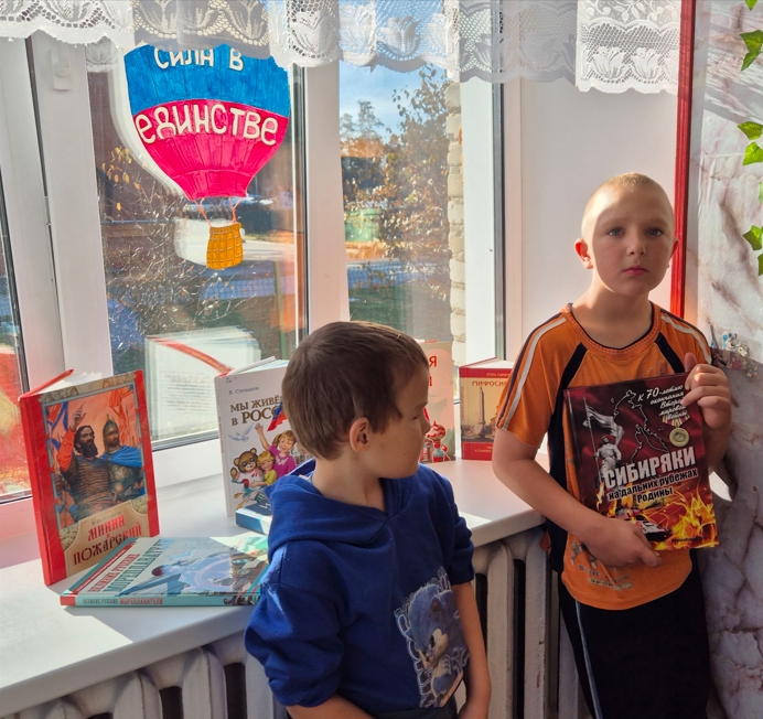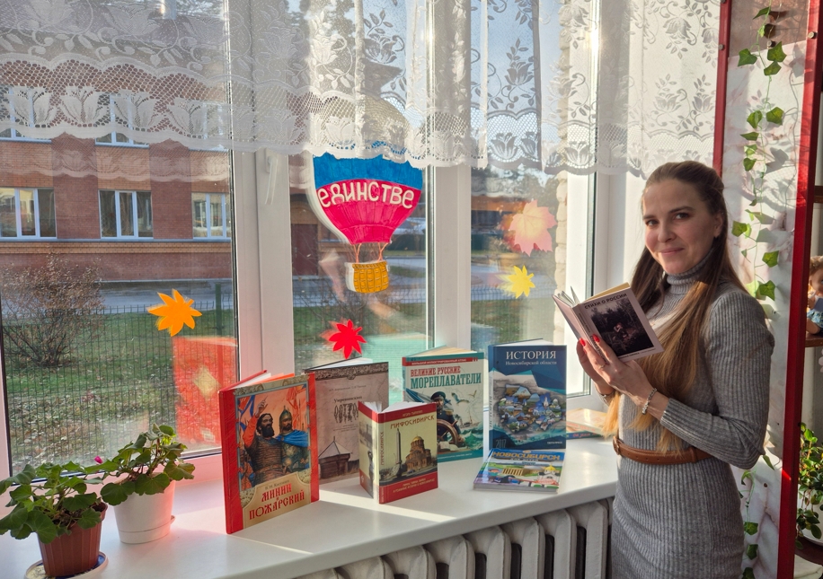 К этой знаменательной дате в библиотеке организована тематическая книжно-иллюстративная выставка «Сила характера». В рамках выставки библиотекарь проводит беседы с посетителями, в ходе которых обращаются к истории Смутного времени, рассказывают посетителям о подвиге народных героев Кузьмы Минина и Дмитрия Пожарского и вместе с читателями рассуждают о сути силы народа - силы победы, единства и характера.