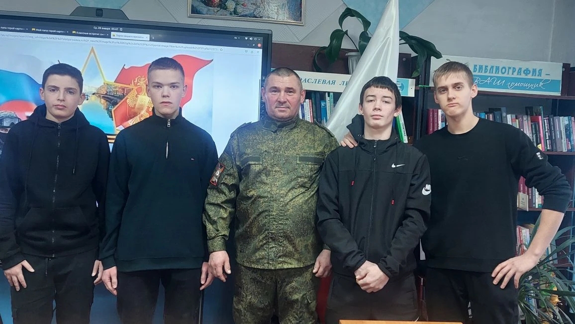 28 января в Широкоярской библиотеке совместно со школой состоялась встреча с Александром Николаевичем, участником специальной военной операции.