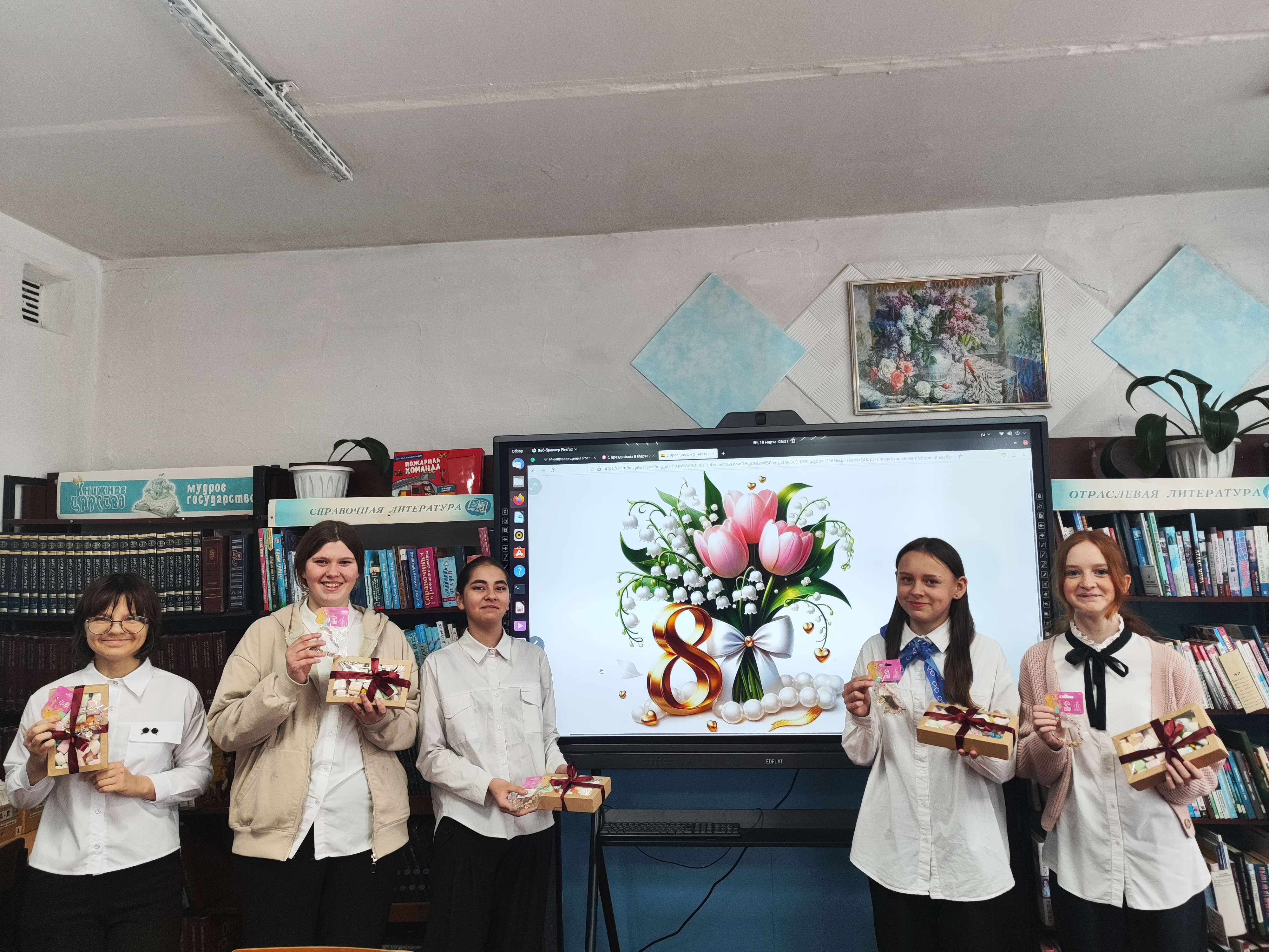 Девочки с удовольствием приняли участие в интересных конкурсах, проявляя фантазию, индивидуальность и обаяние: «Составь букет», «Генеральная уборка», «Я — красавица», а также юные участницы отгадывали весёлые загадки, пели задорные частушки. Мероприятие библиотеки стало нежным и ярким подарком для ребят: оно объединило, знанием и тёплыми поздравлениями от мальчиков, ещё раз доказав, что праздник 8 Марта — праздник внимания, красоты и тепла.