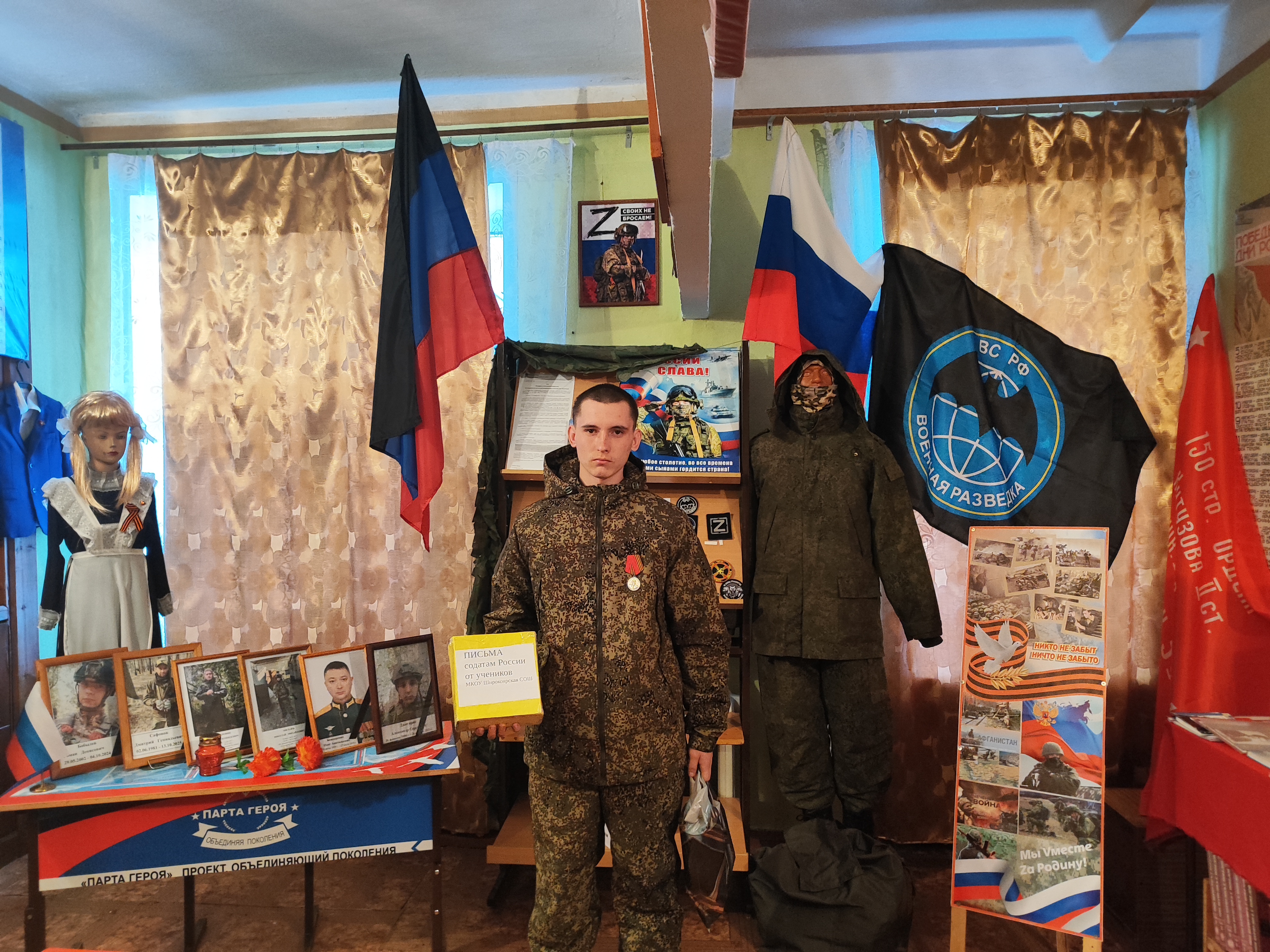 Гость встречи, выпускник Широкоярской школы, рассказал о себе, о трудных боевых ситуациях и о том, как ему удавалось с ними справиться. За боевые заслуги награжден медалью им. Жукова. Игорь Николаевич ответил на многочисленные вопросы собравшихся: он говорил о ситуации на передовой, бытовых условиях, вооружении бойцов, о дружбе и сплочённости тех, кто находится в зоне боевых действий и о многом другом. Гость оказался очень интересным собеседником и так просто и захватывающе рассказывал обо всём, что слушатели прониклись к этому 20-летнему парню глубоким уважением. В заключение встречи поблагодарили Гостя за встречу и пожелали ему крепкого здоровья, успехов в ратном деле и, самое главное, вернуться домой с Победой, живым и здоровым. По окончании мероприятия все вместе сфотографировались на память. Такие встречи способствуют воспитанию чувства гордости за свою страну. На конкретном примере мы увидели, что настоящие герои живут рядом, что мужество, храбрость, любовь к Родине – это качества настоящего человека.