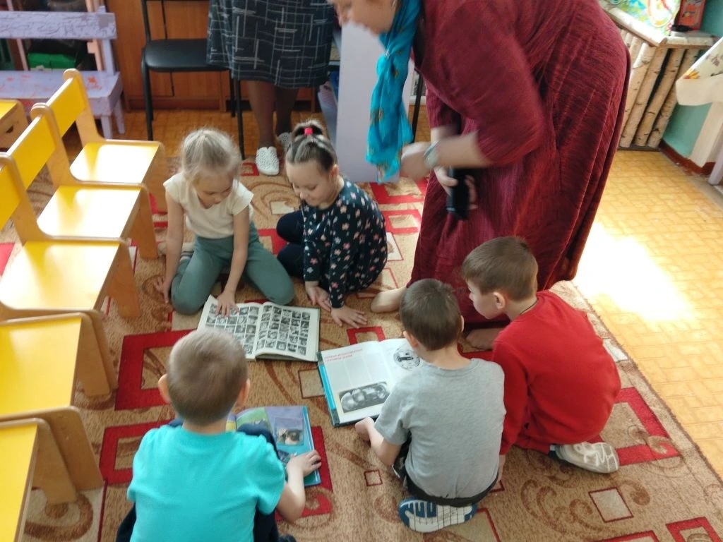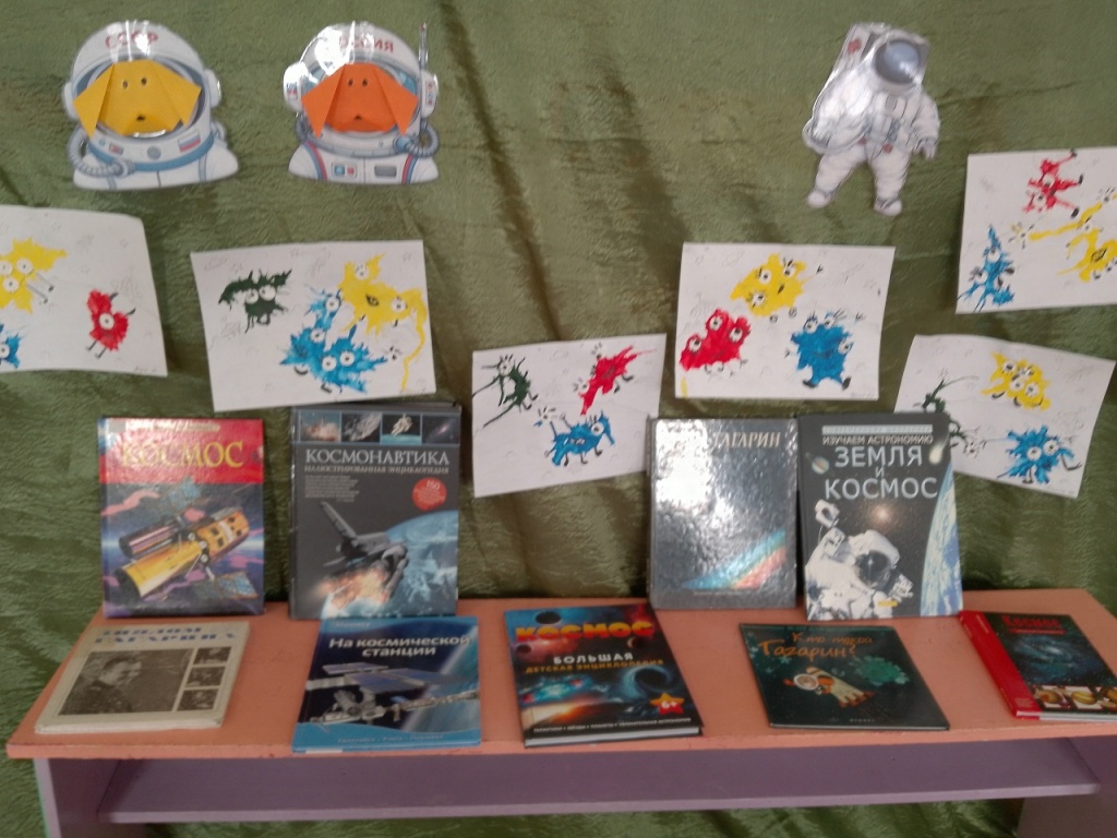 В завершение встречи дети познакомились с книгами и мультфильмами на космическую тематику, а также посмотрели мультфильм «Первый космонавт».