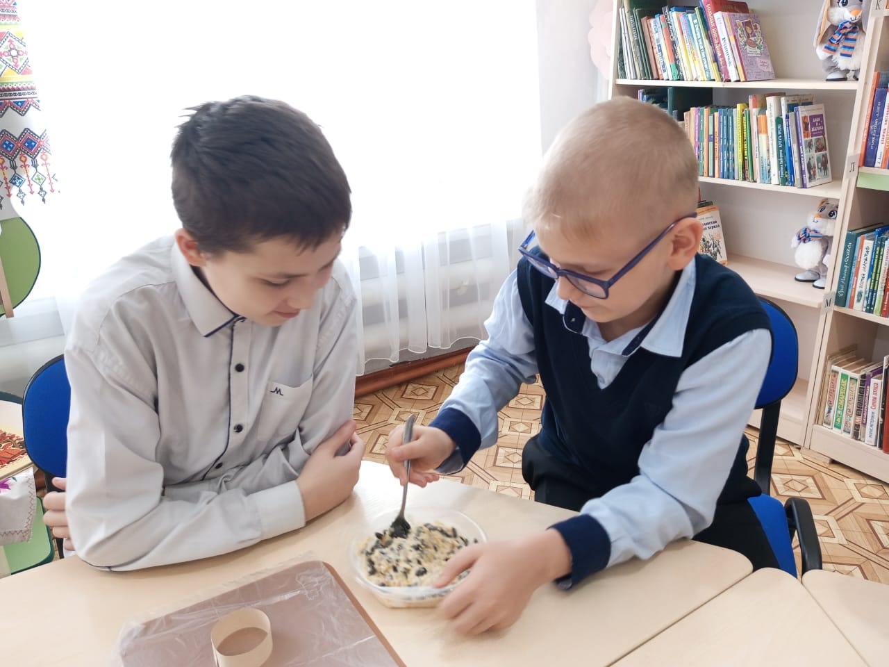 В честь Дня синиц библиотекарь Ташаринской детской библиотеки (Посталюк Е.С.) организовала мероприятие для учащихся 6-Б класса Ташаринской средней общеобразовательной школы. Оно стало прекрасным поводом познакомить ребят с жизнью этих симпатичных птиц и внести вклад в сохранение природного равновесия. Начиналось мероприятие со знакомства с информацией о синицах. Дети познакомились с ролью синиц в природе, услышали занимательные факты и пословицы, подчёркивающие важность заботы о птицах. Далее последовала игровая программа «Можно / Нельзя», где ребята проявляли внимательность и ответственность, выбирая правильную пищу для подкормки птиц зимой. Завершилось мероприятие мастер-классом по созданию съедобных кормушек. Ученики самостоятельно приготовили натуральные кормушки из желатина, муки, семечек и крупы. Готовое угощение было размещено на деревьях около библиотеки.